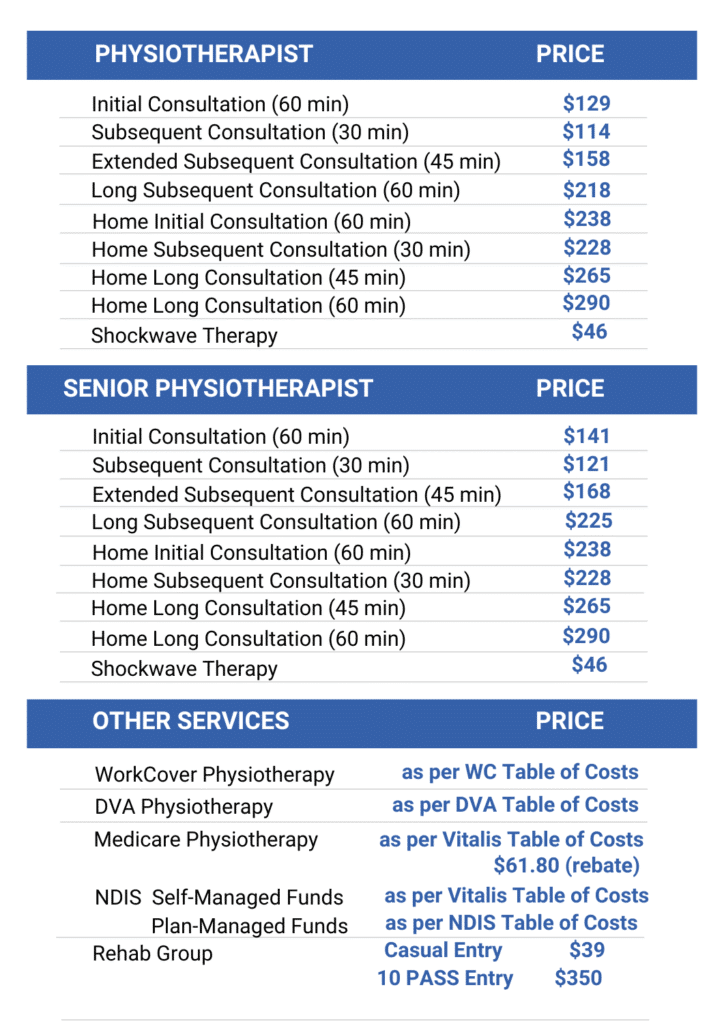 NDIS: We accept NDIS-funded clients who are Plan-Managed or Self-Managed. Please contact the clinic to schedule an appointment.